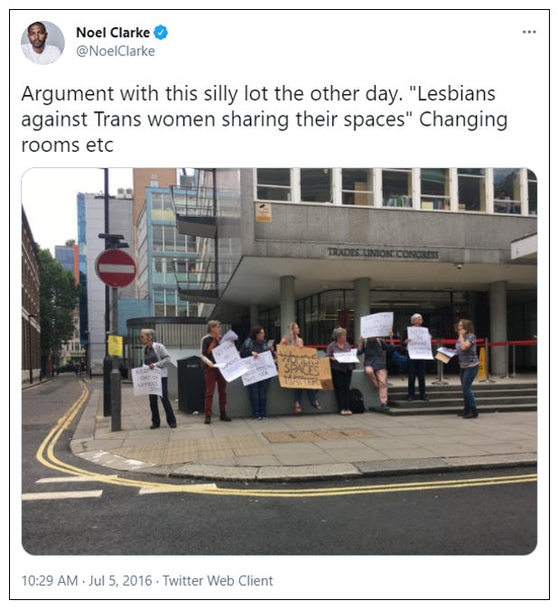 Five years ago he challenged a group of women protesting against gender self ID and its impact on women’s spaces.