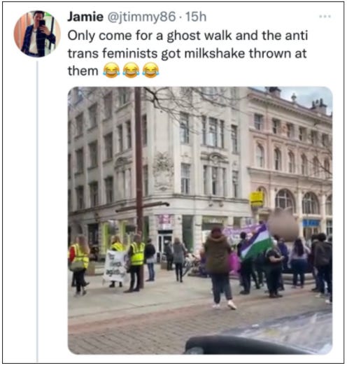 Trans activists on Twitter celebrated this male violence against women and mocked the victims.