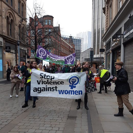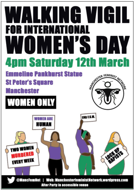 On Saturday 12th March feminists in Manchester held a walking vigil to highlight the problem of male violence against women and to remember its victims.