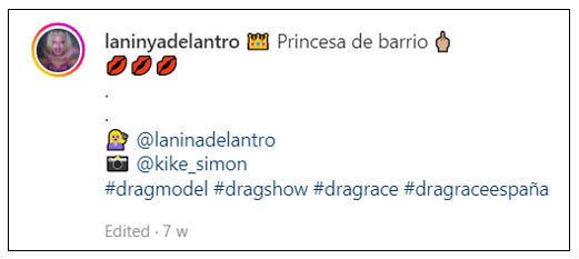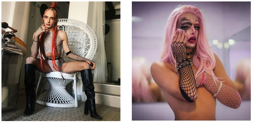 On Instagram he posts photographs of himself with the hashtags #dragmodel #dragrace and #dragshow and describes himself as cross-dressing and a ‘boy in heels’.