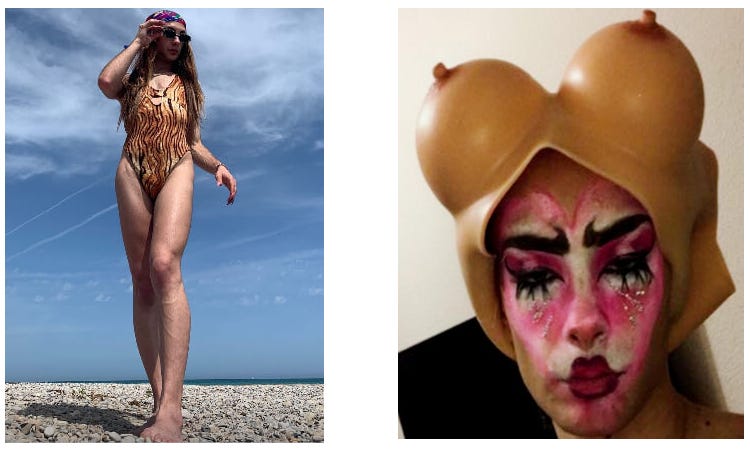 However, the photographs he posts, sporting chest hair and stubble, make it clear that he’s male.