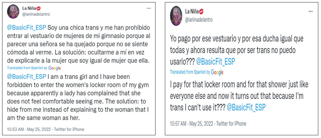 So now the women at Castellón’s Basic Fit gym have to share their changing room and shower with a man who parodies their sex and gloats about his making them uncomfortable.