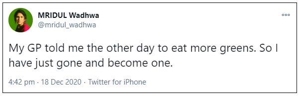 Mridul Wadhwa is a trans-identified male. He has political aspirations but is currently the manager of Forth Valley Rape Crisis Centre, a job he took while concealing the truth about his sex. He has no GRC so is legally male, not that it prevented him from taking up a place on an all-women SNP shortlist back in October. And now he’s abandoned the SNP to join the Green Party. No doubt he’ll fit right in.