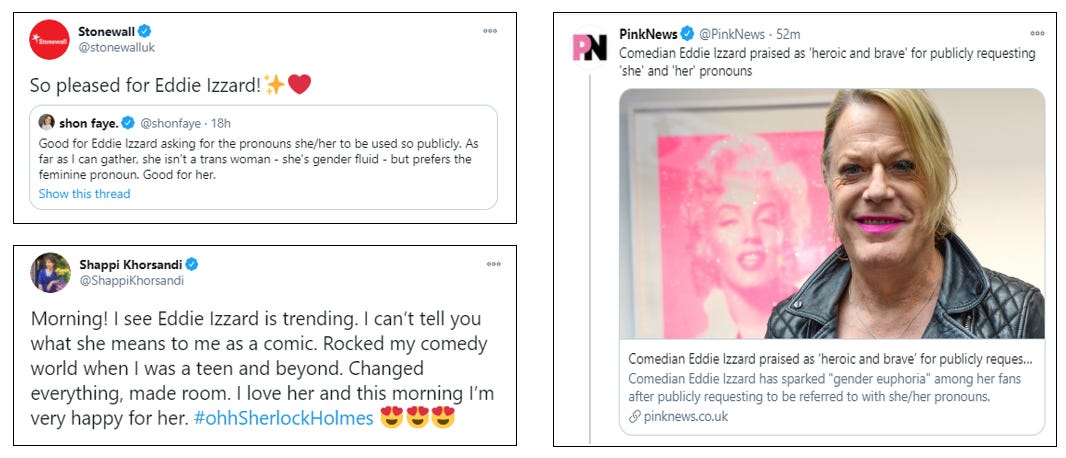 THE INDEPENDENT: Eddie Izzard is now demanding female pronouns and, of course, is being hailed as brave and stunning because of it.