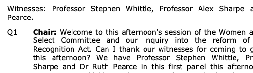 Last week the Women and Equalities Select Committee continued its inquiry into GRA reform, hosting an oral session with six academics from both sides of the debate.