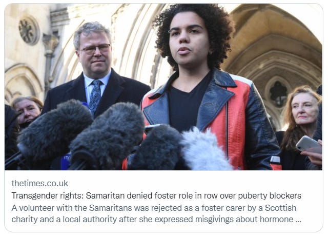 THE SUNDAY TIMES: A Samaritan volunteer was rejected as a foster parent for expressing concern about the use of puberty blockers.
