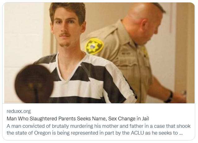 REDUXX: A violent male who murdered his own parents now seeks a change of name and gender while incarcerated, aided by the American Civil Liberties Union (ACLU).