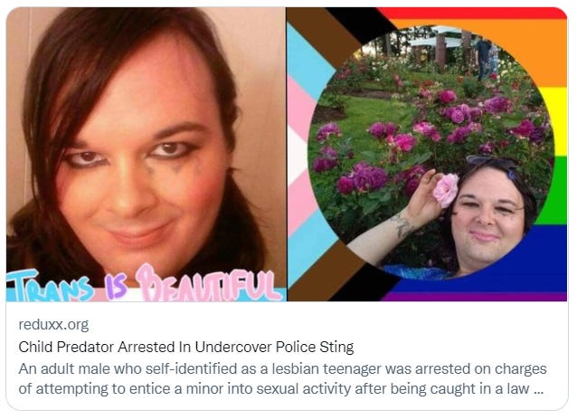REDUXX: A predatory male claiming a trans identity has been arrested in an FBI sting operation investigating the sex trafficking of children.