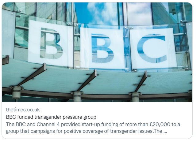 Earlier this week, The Times revealed the BBC funded a trans lobby group in 2011.
