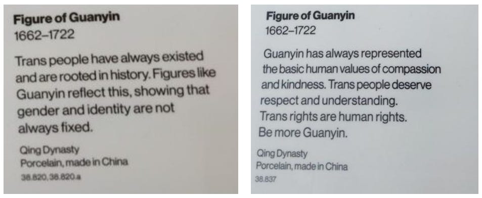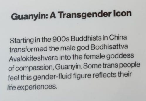 In trying to claim that Guanyin is trans or ‘gender fluid’, not only is the Burrell Collection pushing a highly politicised agenda, it is distorting history. But it’s not the first museum to use a millennia year old deity to promote contemporary ideology.
