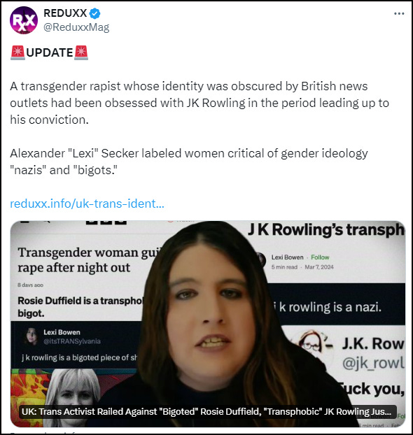 As revealed by Reduxx, Secker became a vitriolic trans activist and maintained an online presence using the name Lexi Bowen.
