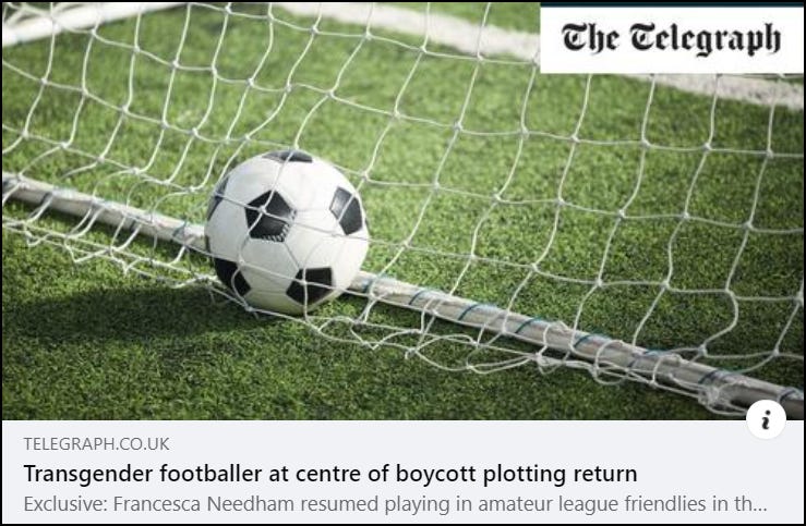 Indeed he would. And fully endorsed by the Football Association (FA), football’s governing body in England. The FA’s trans inclusion policy for adult players allows biological males to play in women’s football if they satisfy certain ‘hormone-based requirements’. It considers applications on a case-by-case basis, assessing the ‘safety of the applicant and other players’ and ‘fair competition’.