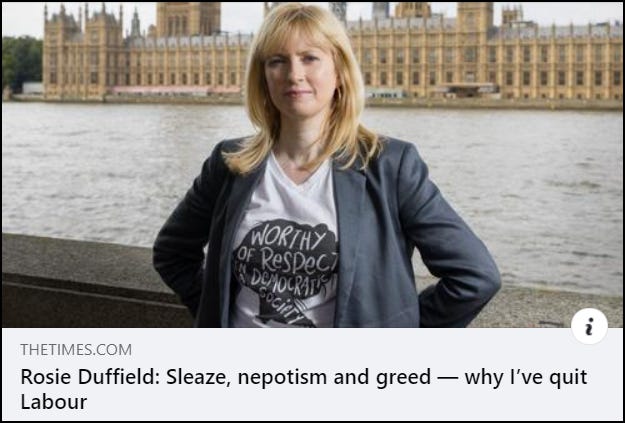 This week, following her resignation, Rosie Duffield spoke to the BBC about her reasons for leaving Labour; the party has become ‘more about greed and power than it has about making a difference’.