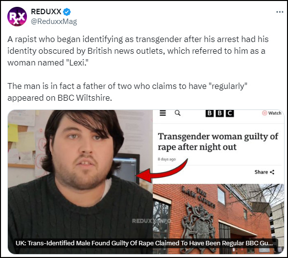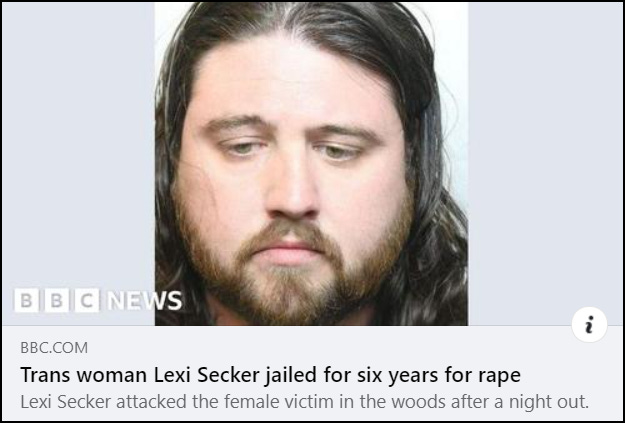 When the BBC initially reported on this case, it described 35-year-old Lexi (formerly Alexander) Secker as a ‘transgender woman’ and wrote that he was ‘living as a man’ when he attacked and raped a woman in Blunsdon, Wiltshire, on 23rd April 2021. At some point between being charged with rape and his case going to trial, Secker developed a trans identity and began calling himself ‘Lexi’.