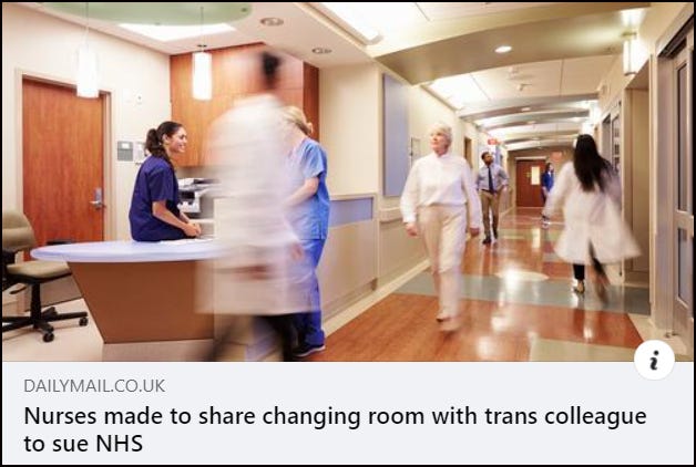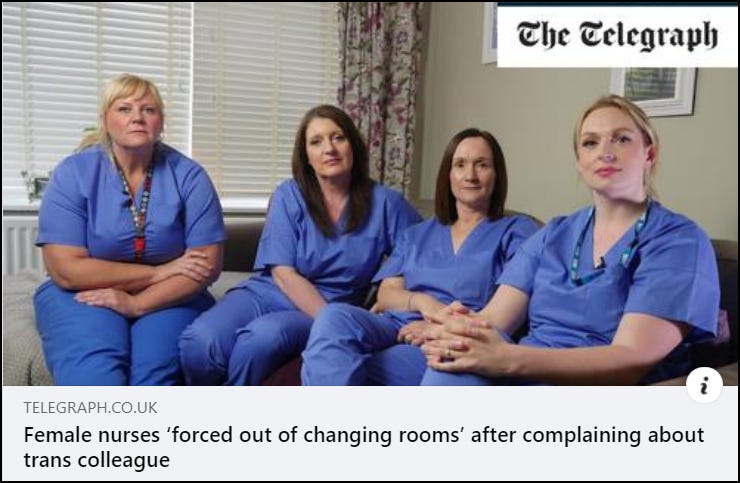 THE TELEGRAPH: The nurses taking legal action over a male using their locker room are now being forced to change in an office.