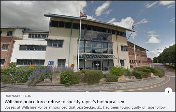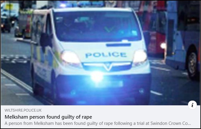 Wiltshire Police were rather coy about revealing Secker’s true sex when reporting on the case, stating that ‘a person’ had been found guilty of rape.