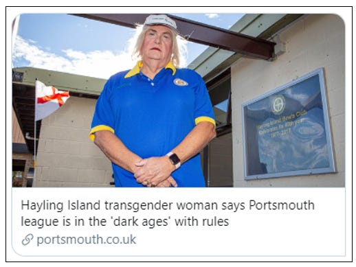 He has hit out at Portsmouth & District Women’s Bowling Association which, reflecting the policy of Bowls England, requires him to be three years post-gender reassignment surgery or to have a GRC, before he can play on a women’s team.