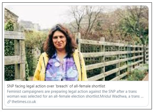 THE TIMES: A feminist campaign group is taking legal action against the SNP after a male was selected for an all-women shortlist.