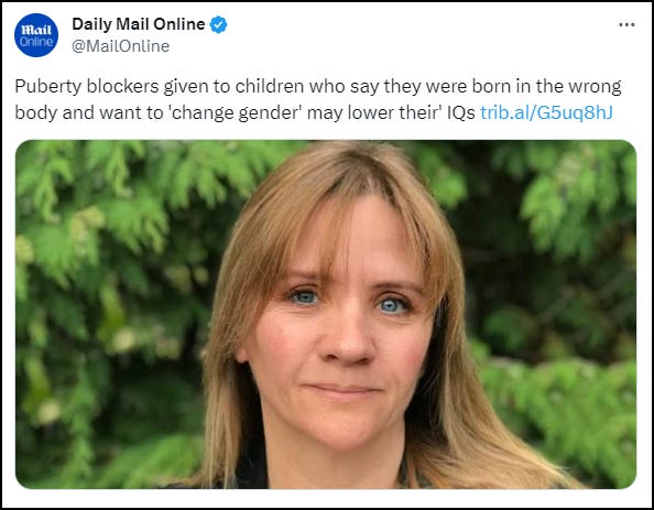 She is calling for urgent research into the impact of puberty blockers on children's brain function, having presented evidence on the ‘detrimental impact’ of these drugs on the IQ levels of the youngsters who take them.