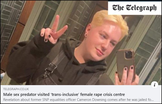 THE TELEGRAPH: Sexual predator, Cameron Downing, accessed Edinburgh’s supposedly women-only rape crisis centre by claiming a ‘non-binary’ identity.