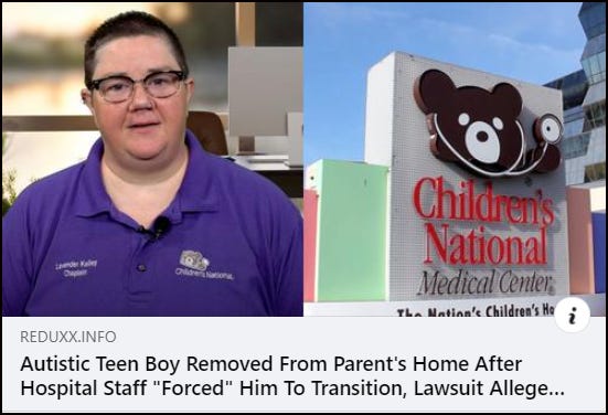 REDUXX: A family from Maryland has taken legal action against a children’s hospital, alleging that it forced their autistic teen to adopt a trans identity.