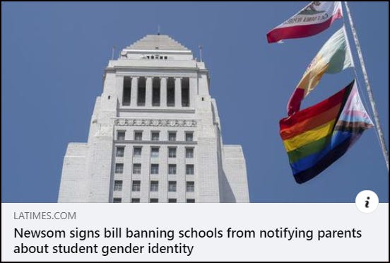 THE LA TIMES: California has just passed a law which allows teachers to conceal from parents that their child has a trans identity and/or is socially transitioning.