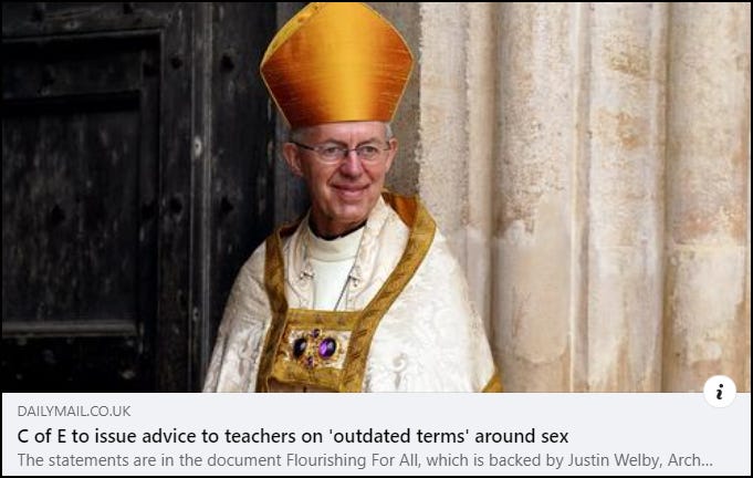 The Church of England has produced an anti-bullying guidance document called Flourishing For All which is set to be issued to thousands of C of E faith schools. Supported by the Archbishop of Canterbury, Justin Welby, this guidance encourages teachers to dispense with so-called ‘outdated’ (ie factual) terms and pushes the language of gender identity ideology.