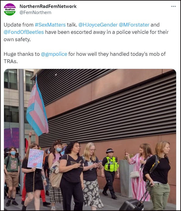 It's unacceptable that the police allowed any members of such a group with a well-established pattern of violence as TRAs to get anywhere near these valiant women.