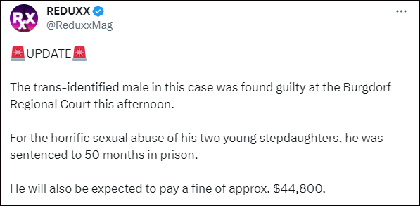 VOICE OF EUROPE: A trans-identified male has been convicted of abusing his partner’s two young daughters.