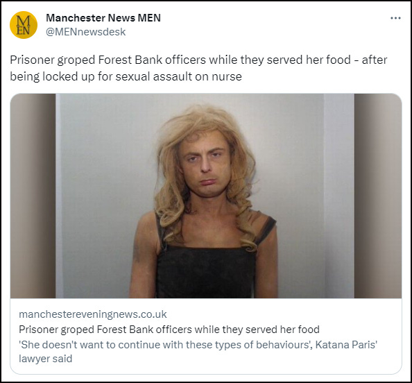 MANCHESTER EVENING NEWS: A trans-identified male recidivist sex offender has been convicted of sexually assaulting two prison officers.