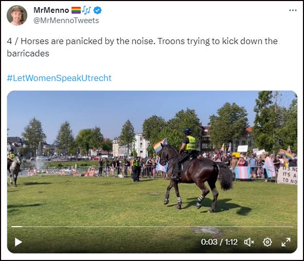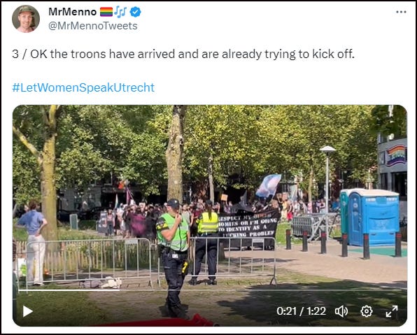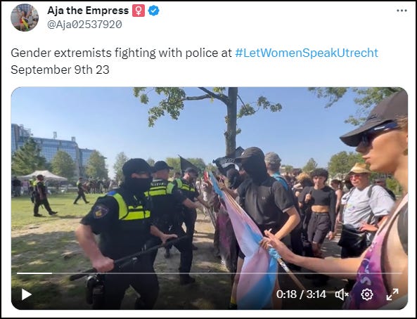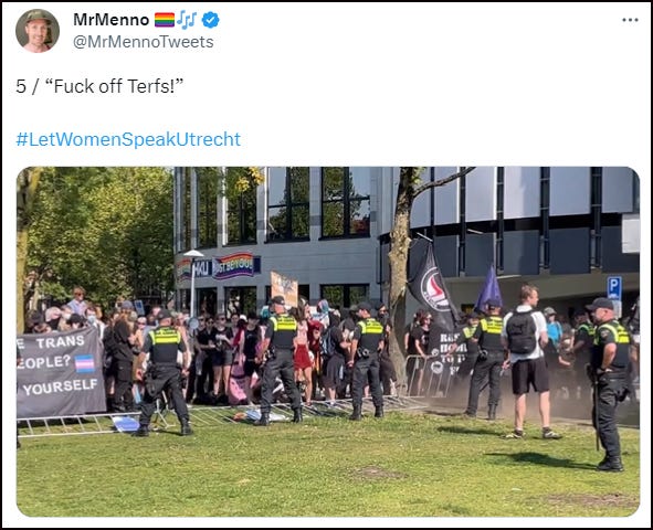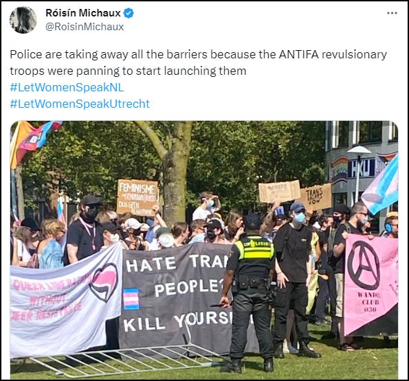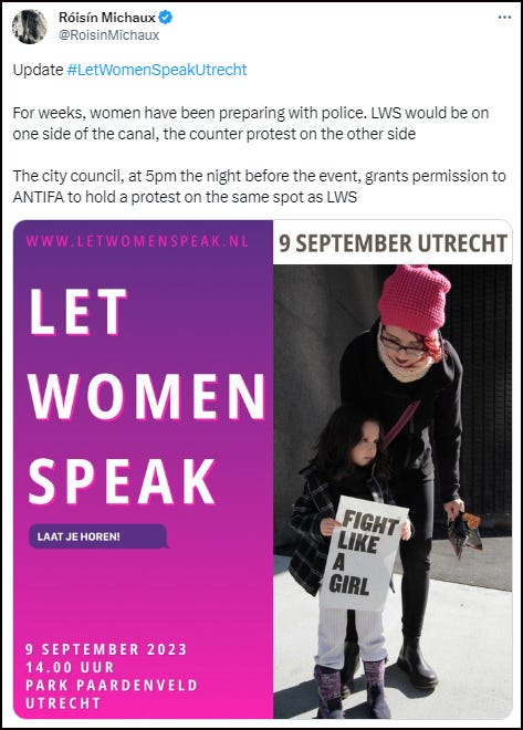 Firstly, on Saturday, a Let Women Speak event was held at Park Paardenveld in Utrecht, The Netherlands. Hours before the event, the city council granted permission to an ANTIFA group to hold a protest on the very sport the LWS rally was due to take place.