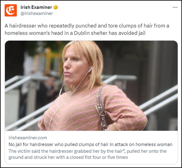 IRISH EXAMINER: A trans-identified male physically assaulted a homeless woman at a Dublin shelter but has avoided a prison sentence.
