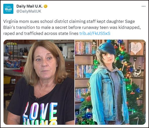 THE DAILY MAIL: A US mother is suing a Virginian school district and a Baltimore public defender over the unthinkable harm caused to her vulnerable trans-identified daughter.