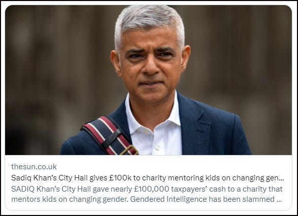 Earlier in the week, The Sun revealed that Sadiq Khan’s office gave almost £100K of London tax payers’ money to trans lobby group, Gendered Intelligence, to indoctrinate children and young people aged 11-24 in ‘gender identity’.
