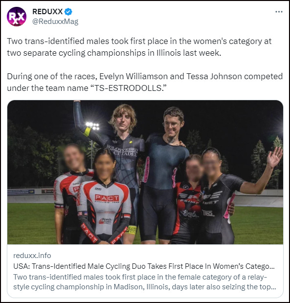 REDUXX: A duo of trans-identified male cyclists have stolen first place at two different cycling events in the women’s category.