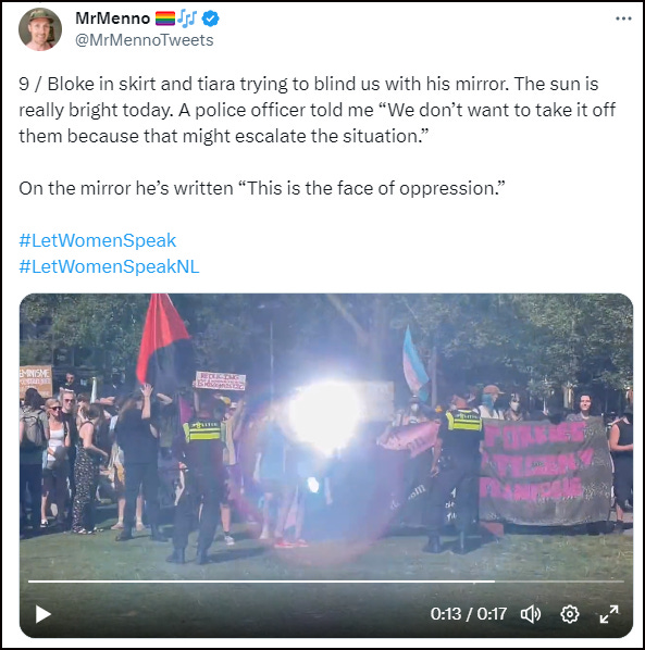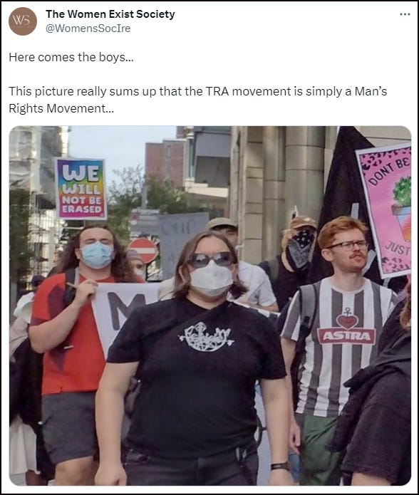 From the outset, trans activists - many of them male and masked - swarmed in to try and derange the LWS event with their usual tactics of noise, intimidation and puerile attempts at sabotage.