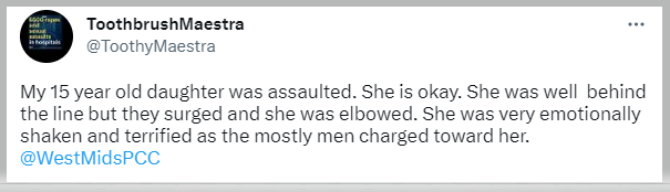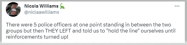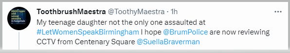 However, women were massively let down by West Midlands Police who, initially at least, didn’t seem to the think their safety, wellbeing and right to free speech were worth turning up for.