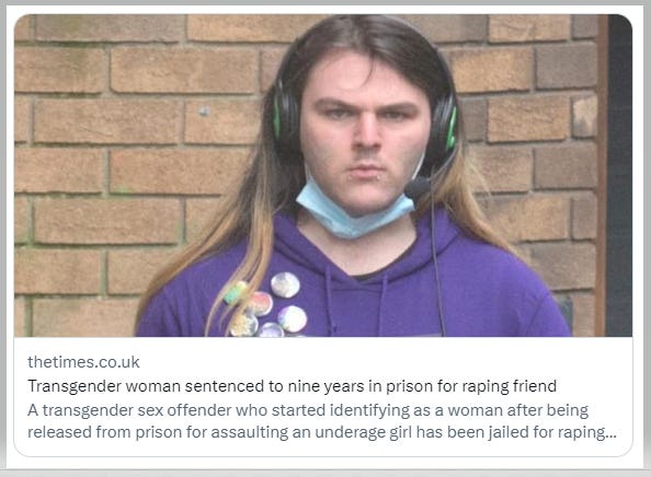 THE TIMES: A trans-identified male raped a vulnerable woman shortly after serving a prison sentence for child sex offences.