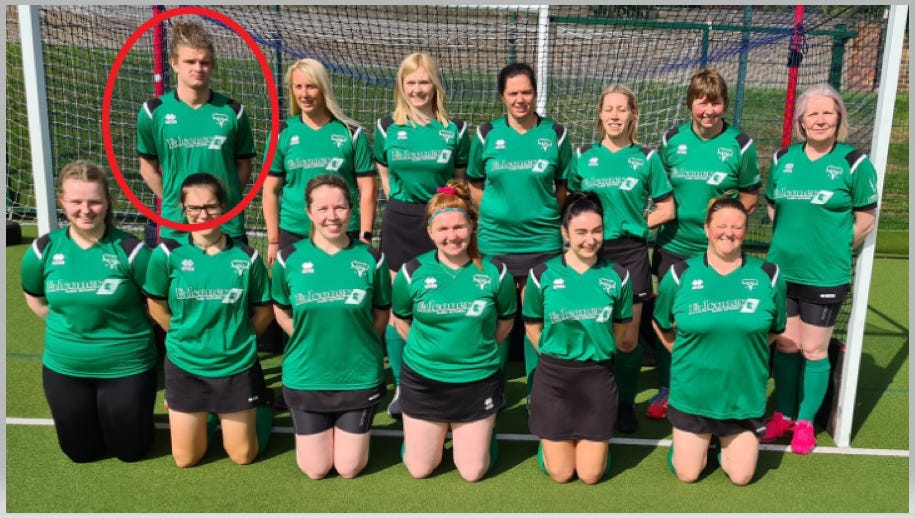 This photograph, posted to the Monarch women’s club Facebook page in September 2021, suggests that Greg has been playing on the women’s team for some time.