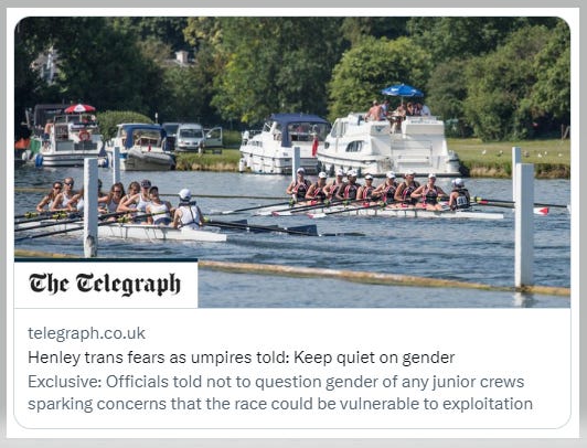 THE TELEGRAPH: Rowing officials at the Henley Women’s Regatta have been told they must not question a junior rower’s ‘gender’, leading to concerns over fairness and the potential for exploitation.