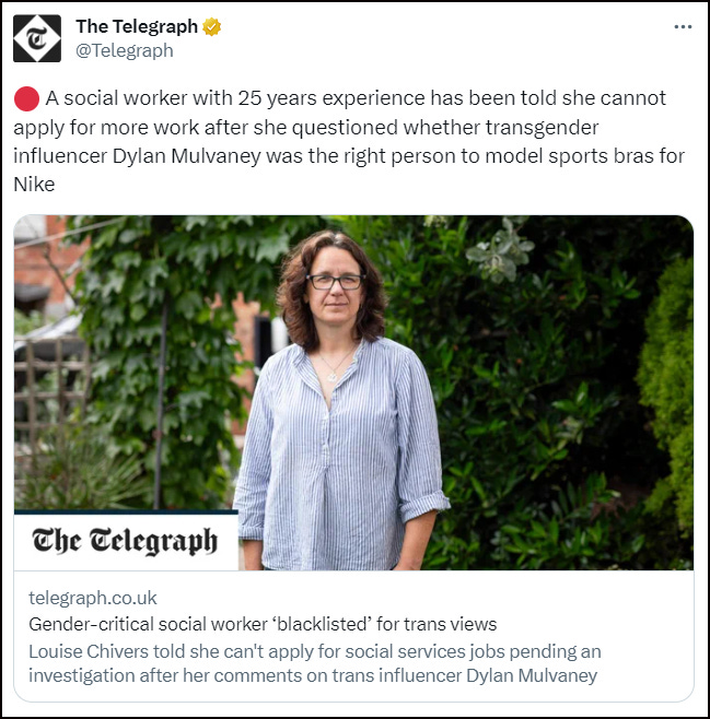 THE TELEGRAPH: A social worker is being investigated and has been prevented from pursuing work over her gender critical comments.