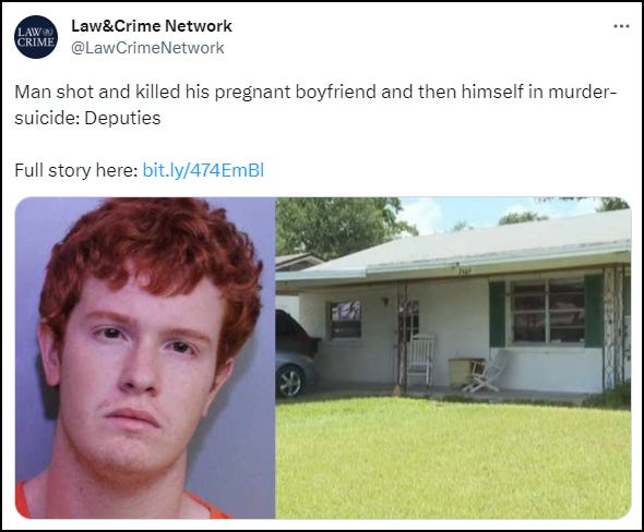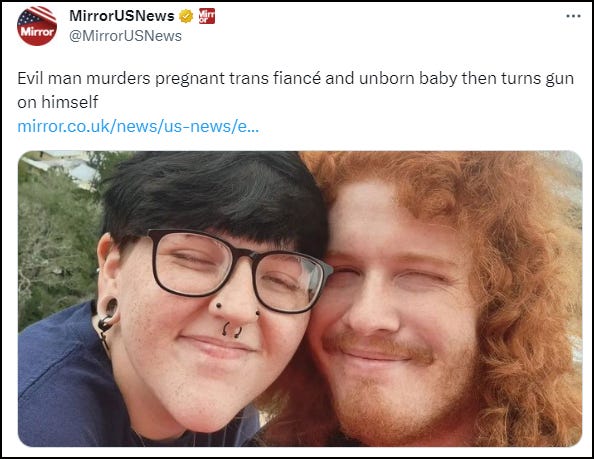 THE MIRROR US: A Florida man murdered his pregnant fiancé, a trans-identified woman, before killing himself.