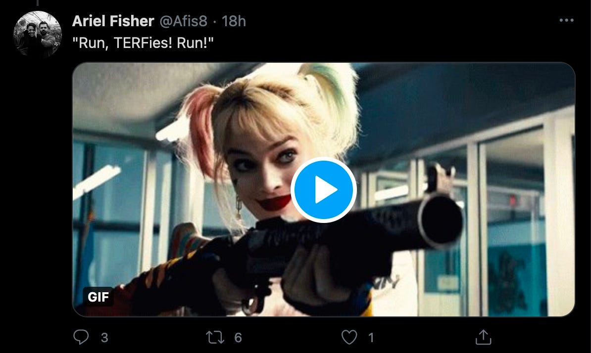 I’ve never seen so many ‘women’ who enjoy appearing in photos with knives, swords and baseball bats. Apparently, these gentle, sword and knife-loving ‘folk’ need immediate access to women’s spaces, and if anyone complains, they’re being a bigot, a line of thinking that has even seduced my old mate Omid Dijalli, here calling feminists ‘Nazis’. (Omid, why not go the whole hog and call them ‘feminazis’?)