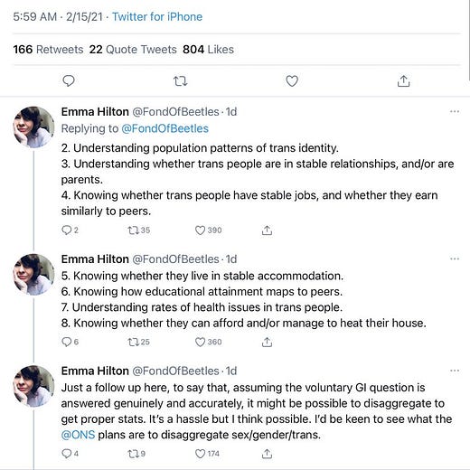 The problem with the census is not question 27, but the guidance which accompanies the sex question (Q3) and tells people to answer in line with their official documents, many of which can be changed simply by request…that is, they record self-identified, not biological sex.