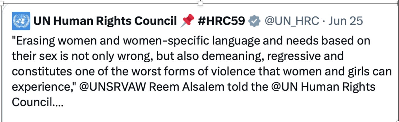 Reem Alsalem - the United Nations Special Rapporteur on Violence Against Women and Girls is one of the few women speaking out in the UN in support of women and girl’s rights. Reem spoke about the dangers of self ID when it was proposed by the Scottish government under Nicola Sturgeon.