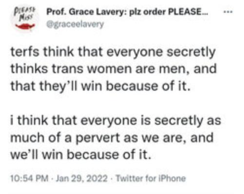 Lavery is still scheduled to take part in an event at UCL, at which he is the star attraction and will be surrounded by his fellow gender evangelists on an invitation-only basis, so presumably he won’t run away from this one. Bizarrely, the event description suggests he will blame threats against academic freedom on university administrators (eh?) and ‘powerful celebrity professors’, the latter a reference to Kathleen Stock, who was forced out of her job precisely because she tried to uphold this freedom.