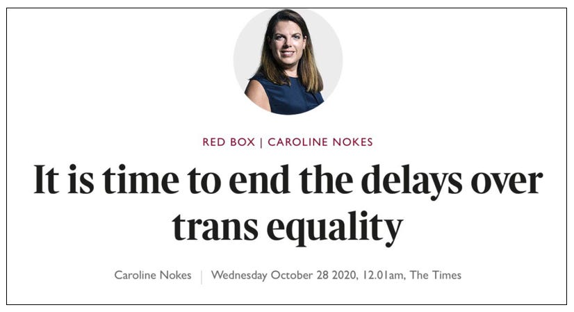 On Wednesday her article, “It is time to end the delays over trans equality”, was published in The Times.