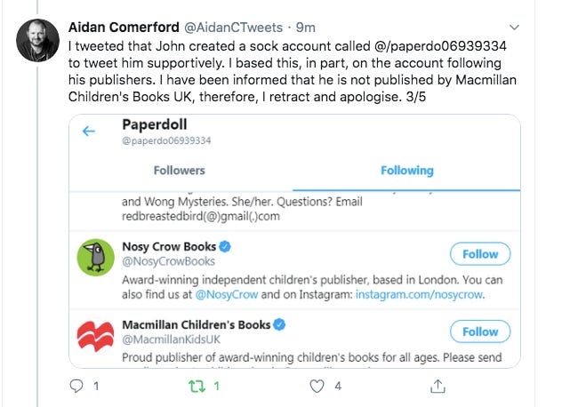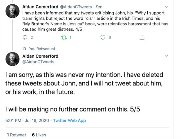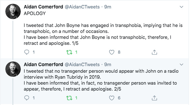 I’ve also seen and savoured Aido’s crawling apology, which also works if you put my name or any of the other people he’s libelled and smeared in the place of ‘John Boyne’.