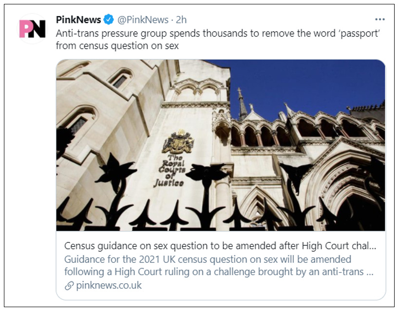 Pink News deemed that those concerned about accurate and legal data collation are ‘anti-trans’. Because facts are transphobic, apparently.