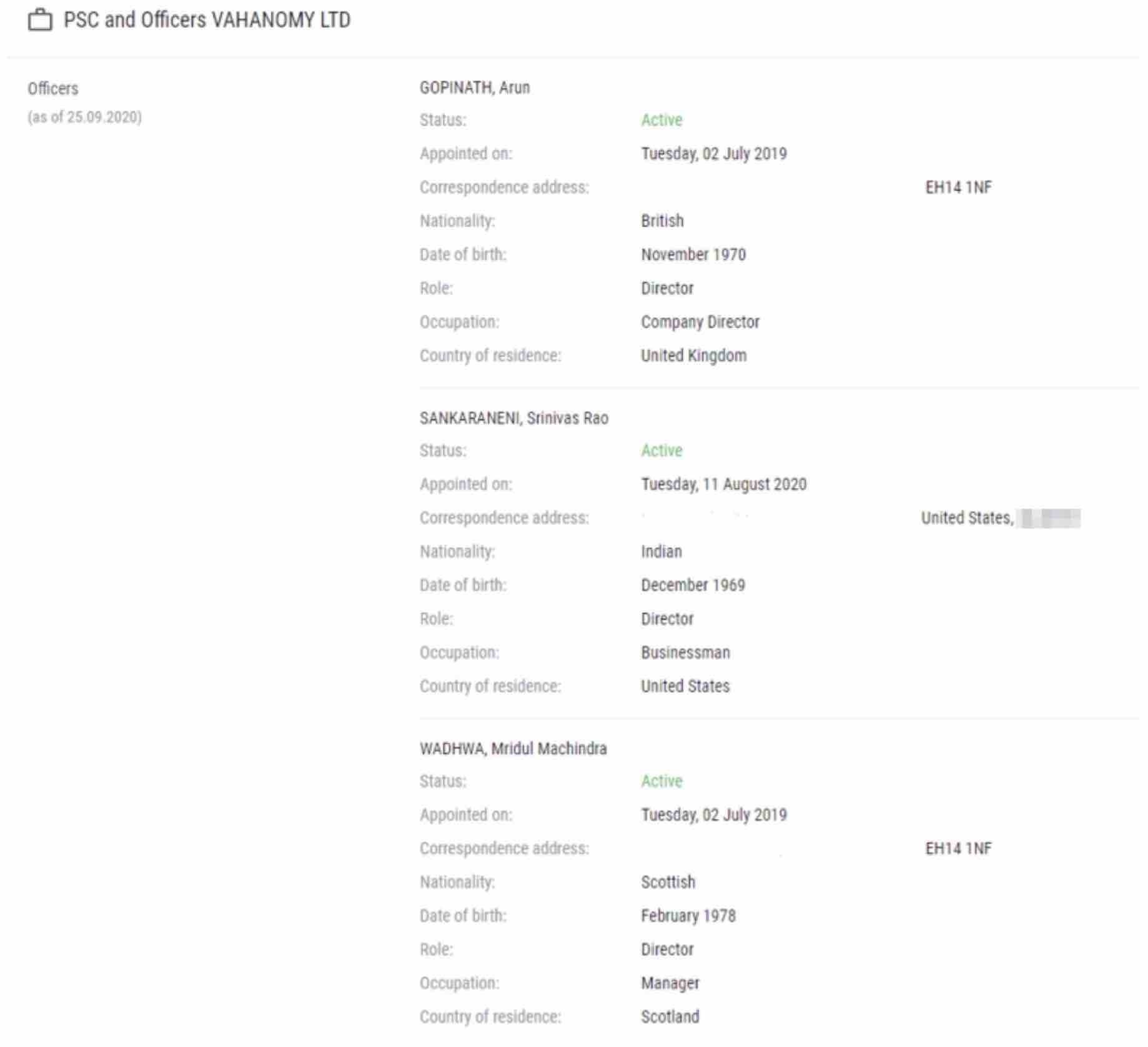According to information from Companies House, Wadhwa and Gopinath share the same correspondence address. Another website also shows them as sharing an address but this one differs from the address listed at Companies House and appears to be a domestic residence rather than business premises.